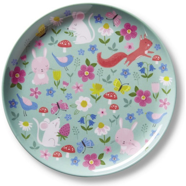 Children's melamine plate with fun backyard friends! Get the matching