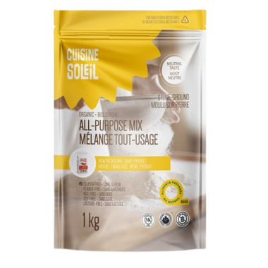 Cuisine Soleil Stone Ground Organic All-Purpose Mix is delicious and one-of-a-kind! This mix does not contain potato or corn starch, which, in conventional agriculture, are heavy in pesticides and are widely genetically modified. This versatile mix will give you the opportunity to bake cakes, muffins, cookies, brownies, pancakes, etc.
