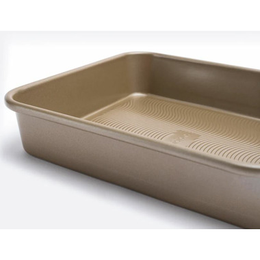 Ideal for sweet and savory baking and cooking! Thick carbon steel for performance, stability, and durability. Straight side walls and seamless design for easy removal of food from the pan and cleaning. Premium two-layer non-stick coating for excellent release of foods. Textured wave bottom increases airflow for even baking and browning.