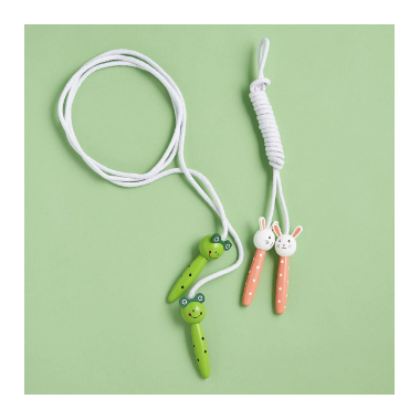 Hop hop hooray! This hand-crafted jump rope is perfect for any toddler. Measures 84" long.