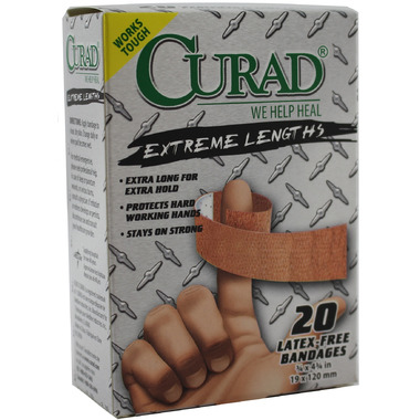 Curad Adhesive Bandage Extreme Length works tough! With this extra long bandage comes extra hold, providing protection for hard-working hands. Curad Adhesive Bandage Extreme Length stays on strong.