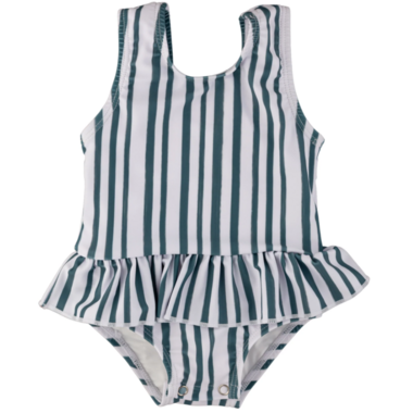 Hand painted irregular watercolour stripes in a steel sage tone by a favourite local Canadian Artist Kaitlin (@alittlelovecreative). The "Arlo" is bright and light with understated classic vibes. This suit was designed as part of a full family matching set