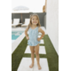 The Twirl one piece swimsuits are this seasons must have easy wear suit. Designed to fit similar to the Ruffle Rashguard suits, these suits offer an adjustable cross back design with sewn in skirt detail around the middle. As with all of the girl suits, they are fully lined with ultra soft nylon fabric and are a full coverage bottom. They do have added length similar to other items to ensure long wear for little ones!