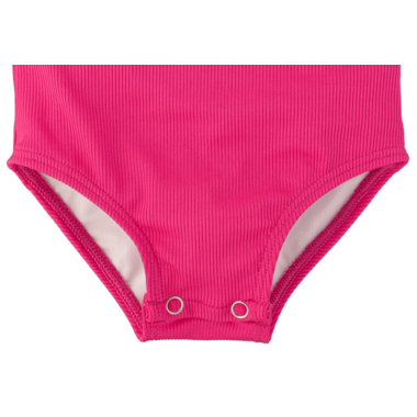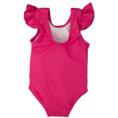 The Ruffle Shoulder One Piece swimsuit features Chemical Free UPF 50+ Protection in the sweetest swimsuit design around. The body of the swimsuits are fully lined for modesty, with a soft inner liner. Added snaps to the infant sizes up to size 12/24m for easy diaper changes. The outer shell of the suit is made from an ultra soft + breathable Lycra fabric providing 4-way stretch for all day comfort and play. This swimsuit has an easy on and off design with the ruffle shoulder adding a feminine touch and extra sun protection to the shoulder area. The perfect swimsuit for everyday wear, or for little ones who prefer their suit without arms.