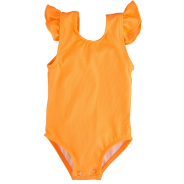 Current Tyed Clothing Ribbed Ruffle Shoulder One Piece Swimsuit Neon Orange