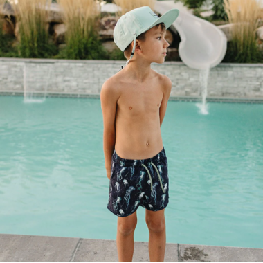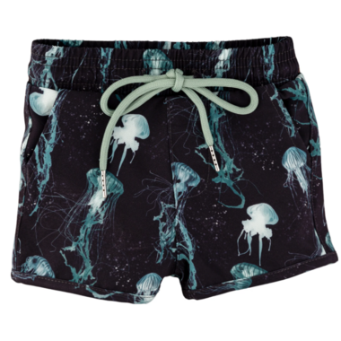 They are the perfect short in and out of the water and designed for all day comfort. Hand painted stunning Jelly Fish arranged on a deep navy base. Walking art, this high detail print was painted by a favourite local Canadian Artist Kaitlin (@alittlelovecreative). Featuring various tones of blue, green, teal and white - this will be your easiest pairing suit of the season.