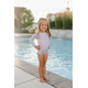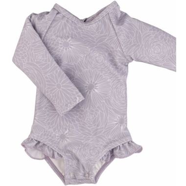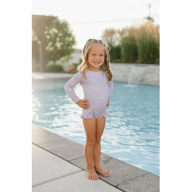 Ruffle Rashguard Suits offer Chemical Free, UPF 50+ Protection, in the sweetest designs around. The body of our swimsuits are fully lined for modesty, whereas the arms are left unlined to ensure full mobility. The shell of the swimsuit is made from our ultra soft + breathable Lycra fabric, providing 4-way stretch for all day comfort and play. These swimsuits conveniently come with crotch snaps in sizes up to 24M for easy diaper changes.