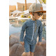 Fully reversible, they can be worn with the zipper at the front or back for added versatility. Made from ultra-breathable, quick-drying custom fabric blend, these sunsuits provide comfort and protection throughout the day. Built-in zipper protection and strongly reinforced seams ensure durability, so they can withstand your child's most active adventures. Designed to move with your kids, not against them.