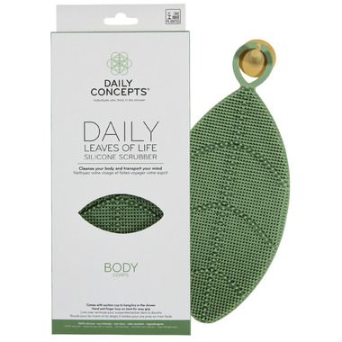 The Daily Leaves of Life Silicone Body Scrubber is shaped to cleanse your uniquely beautiful body and all of its parts. The silicone bristles exfoliate and massage your chest, shoulders, arms, legs and back to leave your mind relaxed and your skin feeling fresh, clean and smooth. Included with the Body Scrubber is a suction cup to hang, dry and keep your body scrubber organized and looking beautiful in your shower.
