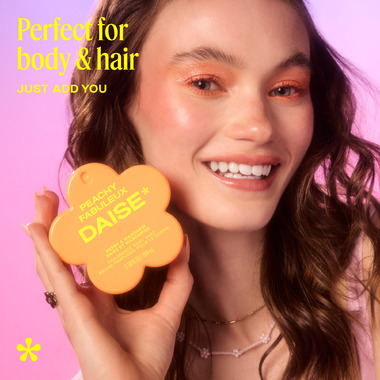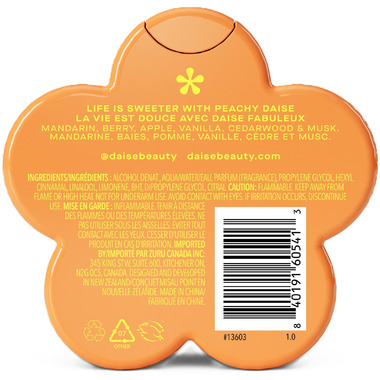 Meet your new go-to body and hair spritz! DAISE Peachy Daise Fragrance Body Mist is a juicy, mood-matching berry and mandarin scent thats perfect for body and hair. Peachy Daise is a juicy blend of mandarin, berry, apple with smooth vanilla, cedarwood and a hint of musk—and lingers for up to 24 hours.