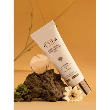 dAlba White Truffle Double Moisture Cream is a dual-formula moisturizer that combines a lighter Aqua Serum layer with a richer Intense Cream layer in one convenient product. It is vegan-certified and designed to provide balanced hydration and nourishment with a smooth, non-sticky finish.