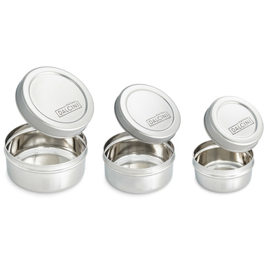 This set of 3 different sized snack containers is likely to be your favorite snack containers ever. Simple downward pressure on the lid to close and a twist and lift motion to open, it's probably the simplest seal you have ever seen. They also nest neatly with their lids, so you'll have beautifully organized storage container drawers too.