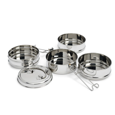 This 4 tier stainless steel food container is a classic Indian tiffin with the signature Dalcini Stainless quality and style. Versatile and convenient, it is a food storage favorite. Great for packing a lunch, a picnic, or to use for meal prep, or counter storage of nuts and snacks. It's great to take on roadtrips too for an assortment of car snacks!