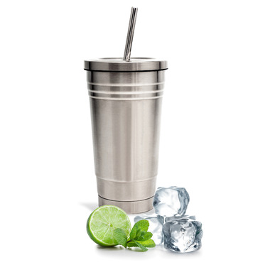 The Danesco Double Walled Tumbler - This reusable tumbler with straw is double walled to prevent condensation and keeps liquids cool or hot for hours.