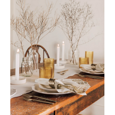 Drink in the delicate ridges and crystal clear, smoky, or topaz tones of this modern glassware collection.