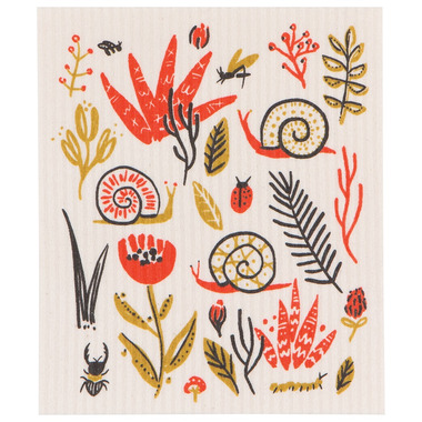 Made from cotton and plant-based cellulose fibers, these 100% natural and compostable cloths are an established must-have in Scandinavia. They offer a sustainable alternative to sponges, dishcloths and paper towels and become soft and pliable when wet for easy cleanup. A world of botanical beauty flourishes with insects inching at their own pace.