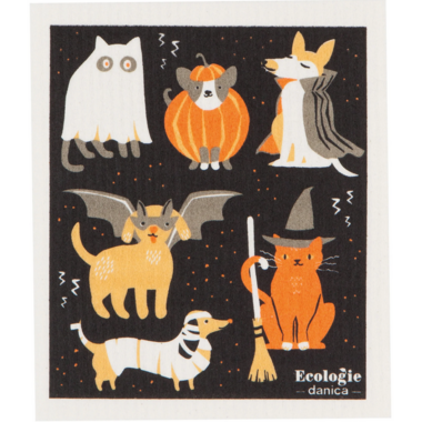 Host a Halloween parade across your counters with this 6.5 x 8 inches Ecologie Costume Party Swedish dishcloth. Dressed-up dogs and creepy cats bring hauntingly good fun to your cleaning supplies.
