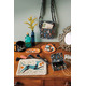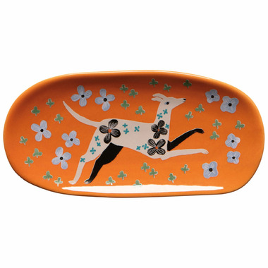 The ceramic Dogwood dish in its unique shape makes a convenient landing spot for keys, loose change, small jewelry, and paperclips. This design invites you to roam along the country road with a playful pup and a palette of rich rust, serene blue, and striking black conveying an unassuming beauty.