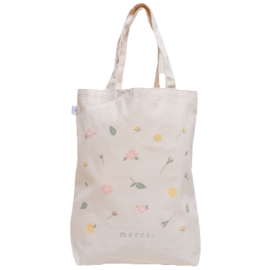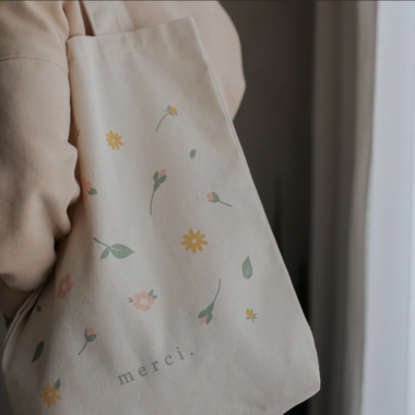 Why do Dans Le Sac bags have Merci written on them? Because Dans le sac gives a dollar per bag sold to a charity of their choice (announced on Dans le Sac social media channels).