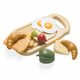 The set contains everything needed to serve an inviting breakfast, including fried eggs, bacon, vegetables, bread, and a croissant. The natural, muted colors in beige and green shades give the toy a sophisticated and realistic appearance that appeals to children's sense of detail.