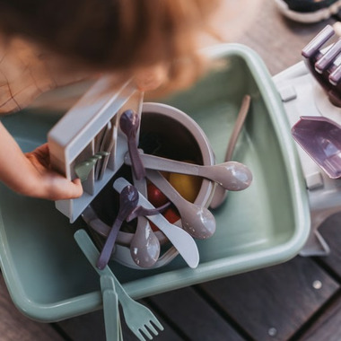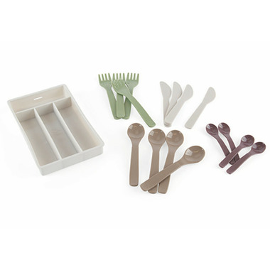 The practical storage tray with separate compartments keeps the cutlery set organized and makes it easy for children to sort and organize the pieces after use - a good exercise in systematization and order. The smart division also makes it easy to see if anything is missing and helps children learn to clean up after playing.