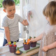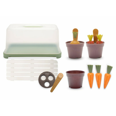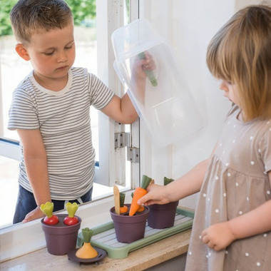 Through play with the mini greenhouse set, children develop their fine motor skills and hand-eye coordination while handling various tools and pots. It simultaneously stimulates imagination and creativity when they plan their own little garden and "grow" different crops. The set is ideal for joint play between children and adults, creating valuable moments of learning and conversation about nature and sustainability.