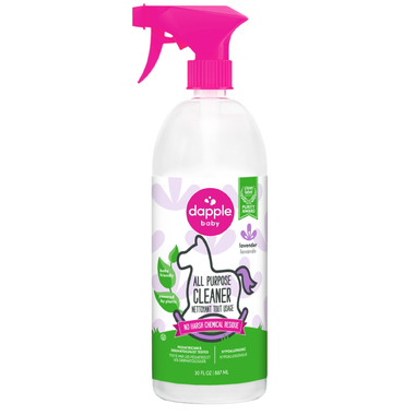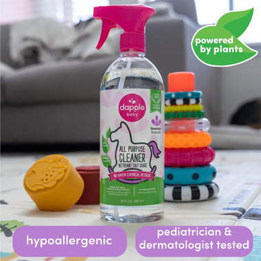 Dapple Baby All Purpose Cleaner is the perfect way to safely clean all your household surfaces and toys. Its pure and effective formula lets you spray and wipe without worry. It quickly and effectively removes sticky food and messes from highchair trays and toys to deliver a worry-free clean, without harsh chemical residue. Plus, it’s a Clean Label Project Purity Award Winner for clean and pure ingredients, is pediatrician and dermatologist tested, hypoallergenic and made with plant powered ingredients.