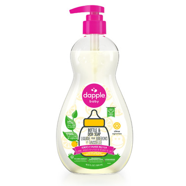 Independent tests prove that Dapple Baby Bottle & Dish Soap removes up to 50% more milk film and odor than other leading brands.* It is specifically formulated to remove the fats, proteins and carbohydrates left behind by breast milk and formula so it rinses cleaner, and uses baking soda to combat any odor. It does so much more than just clean bottles – use it on all your dishes, for babies, children and the rest of the family too.