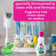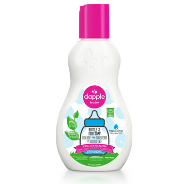 Independent tests prove that Dapple Baby Bottle & Dish Soap removes up to 50% more milk film and odor than other leading brands.* It is specifically formulated to remove the fats, proteins and carbohydrates left behind by breast milk and formula so it rinses cleaner, and uses baking soda to combat any odor. It does so much more than just clean bottles – use it on all your dishes, for babies, children and the rest of the family too.