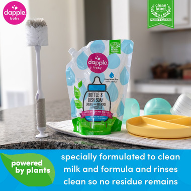 - MULTI-USE AND SPECIALLY FORMULATED TO CLEAN RESIDUE FROM MILK AND FORMULA: Dapple Baby Bottle & Dish Soap is specifically formulated to clean fat, protein and carbohydrate residue, which is commonly found in baby bottles with milk and formula film, and more broadly when cleaning the full familys dishes.