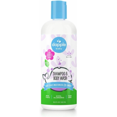 - DAPPLE SHAMPOO & BODY WASH: 16.9 ounce bottle uses a tear-free, plant-based formula to gently cleanse baby from head to toe. This prebiotic botanical blend leaves skin moisturized 2X longer, and gives moms peace of mind.