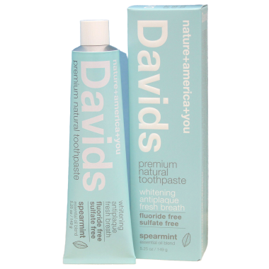 Davids is a premium natural toothpaste with a focus on sustainability, designed to naturally whiten, remove plaque, and freshen breath. 98% USA origin ingredients with premium natural spearmint oil flavoring. Proudly made in the USA.