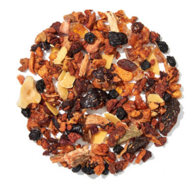 Ingredients: Apple (apple, citric acid), Raisins, Brown sugar, Natural and artificial (almond, hazelnut) flavouring, Elderberries, Willow bark, Almonds (almonds, sugar), Hazelnuts, Sour cherries, Raspberries, Stevia extract.