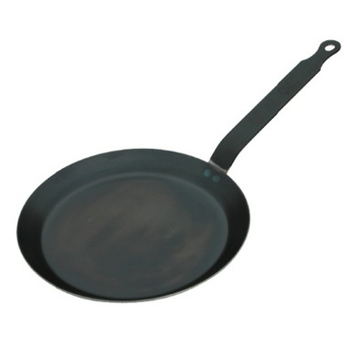 Blue steel plate is ideal for making crispy, tasty crepes. The low skirt of the frying pan allows crepes to be easily flipped and turned. The handle is welded.
