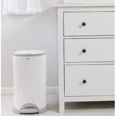 Unlike other disposal systems where you have to bend over, operate a lid, or even shove a soiled diaper inside the diaper pail, Dekor Diaper Pails are 100% hands-free. After a diaper change, you are likely to have baby in one arm and the soiled diaper in the other. No one has a third hand to operate the diaper pail. Just STEP on the foot pedal, DROP the soiled diaper through the trap door, and you're DONE!