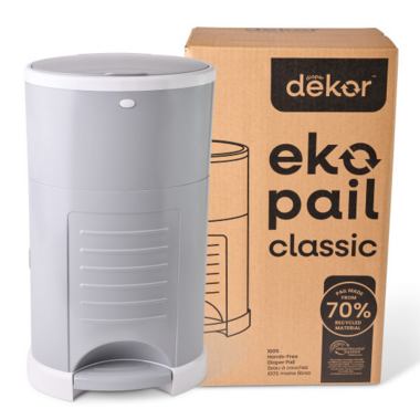 Dekor's on a mission to make diaper duty a little less daunting and a lot more eco-friendly! Discover Dekor Eko with the same Step Drop Done functionality parents have loved for years, now crafted with 70% recycled materials, to help protect the planet for future generations. You'll change 6,000-9,000 diapers before your child is potty trained! Make diaper disposal easier on you and the environment with Dekor Eko the ONLY diaper pail and refill system crafted with 70% Post-Consumer GRS-Certified Recycled Materials and packaged in 80% Recycled Cardboard.
