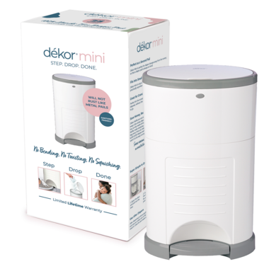 - D?kor Mini is perfect as a secondary diaper pail?perfect for a powder room or grandparents? house.