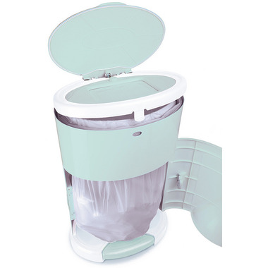 on the Pedal and drop the diaper in. The unique trap door system helps