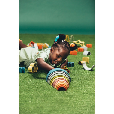dena Nature reflects the richness of the colour range found in nature. Organic colours full of vitality to invite you to explore the colours of terrestrial and marine environments, present both in the animal kingdom and in corals or plants. Teether and playmate, all in one. Thanks to its soft material and its design, with dena Rainbow your baby will begin to stimulate their creativity from day one. They will spend the day experimenting, playing and chewing safely.
