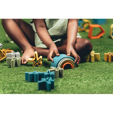 dena Nature reflects the richness of the colour range found in nature. Organic colours full of vitality to invite you to explore the colours of terrestrial and marine environments, present both in the animal kingdom and in corals or plants. Teether and playmate, all in one. Thanks to its soft material and its design, with dena Rainbow your baby will begin to stimulate their creativity from day one. They will spend the day experimenting, playing and chewing safely.