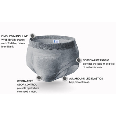 • Depend Real Fit for Men gives you the look, fit, and feel of real underwear with cotton-like fabric, worry-free odor control and maximum incontinence absorbency
