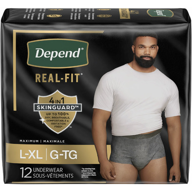 - 1. Depend Real Fit Adult Incontinence Underwear for Men, maximum absorbency, size large/extra-large (38-50" waist), grey color, 12 count; now with a new look and improved benefits!