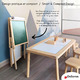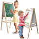 An easel that grows with your child! Height-adjustable, this wooden easel features a chalkboard on one side, a whiteboard on the other, and a rod to hold a paper roll. Its practical storage tray is accessible from both sides.
