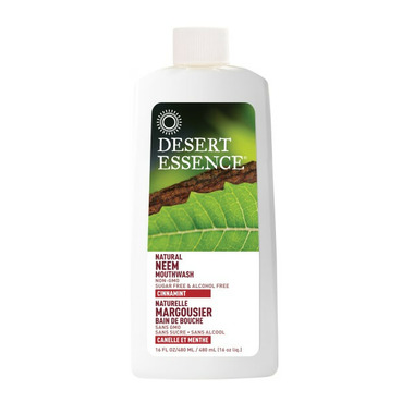 Desert Essence Natural Neem Mouthwash leaves breath amazingly fresh. Made with Neem, the Ayurvedic toothbrush, this powerful mouthwash helps reduce buildup of acids that can damage teeth and gums. Calendula, Sage and Aloe soothe gums while a natural burst of pure Cinnamon, Peppermint and Wild Mint Oils leaves breath amazingly fresh.