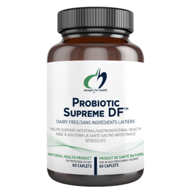 Probiotic Supreme DF™ is a high-dose, dairy-free probiotic, delivering 15 billion organisms per dose in a caplet form – and using an advanced patented delivery system to ensure delivery of the highest number of live organisms to the intestinal tract. As the probiotics are meant to release over an extended time frame, effective dosing need only take place once per day. This also ensures delivery throughout the entire intestinal tract.