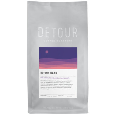 Detour Dark is not dark in a traditional sense, but it's dark for them. They've developed this blend to bring out deep chocolate and molasses flavours because it's approachable and balanced, but with the syrupy sweetness and rich body of a darker roast.