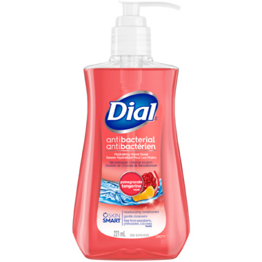 Dial Pomegranate & Tangerine Anti-Bacterial Hand Soap's unique formula effectively removes dirt and germs, while you enjoy the tangy, enticing scents of pomegranate and tangerine. This hand soap with moisturizers gives your hands the pampering they deserve. Mild enough for daily use.
