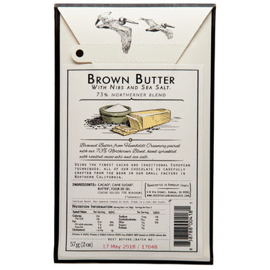 Browned Butter from Humboldt Creamery paired with their 73% Northerner Blend, hand sprinkled with roasted cacao and sea salt.