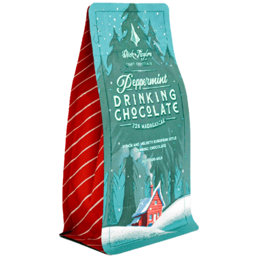 A rich and velvety European style drinking chocolate, handcrafted using ethically sourced cocoa beans from the Sambirano Valley in Madagascar. Mixed with crushed pieces of Natural peppermint candy.