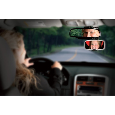 Adjustable mirror which allows you to monitor the entire backseat of the car while you are driving. The See Me Too™ attaches to your existing rear view mirror using a unique clip and offers a crystal clear view of the children in the back of the vehicle. No distortion. Mirror measures 2.25" H x 4.75" W (5,7 x 12,1 cm) which allows you to see the entire back seat.
